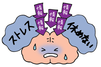 また、メールやSNS により、いつでも仕事に追われ、脳は休む時間がありません。NHKの TV 番組「クローズアップ現代」でも「オーバーフロー脳」「スマホによる脳過労」が取りあげられました。