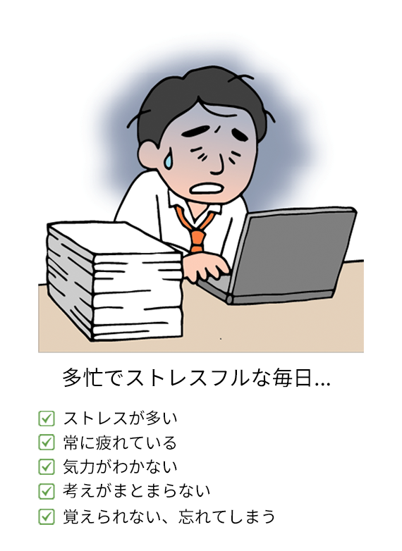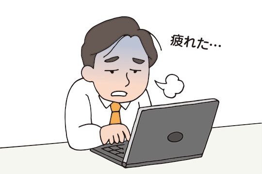 回復しない疲れやイライラ、ぼんやりする思考、これまでにないケアレスミス、集中力が続かずに思い通りに仕事が進まない 。
